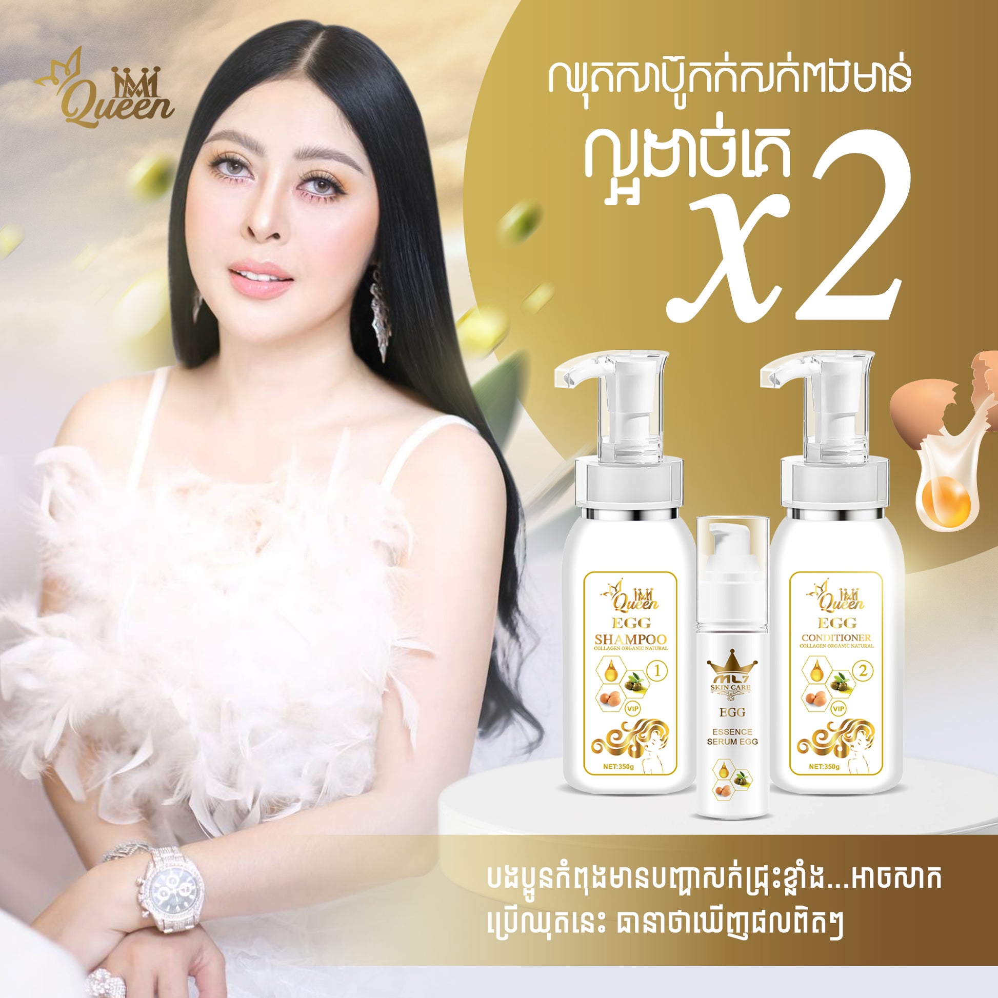 After using the EGG hair care set consistently for 3 weeks, you will start noticing less dandruff, and less fall outs. Combine with Beauty Collagen Booster supplement, you will start noticing hair growing faster, thicker, and overall healthier hair.