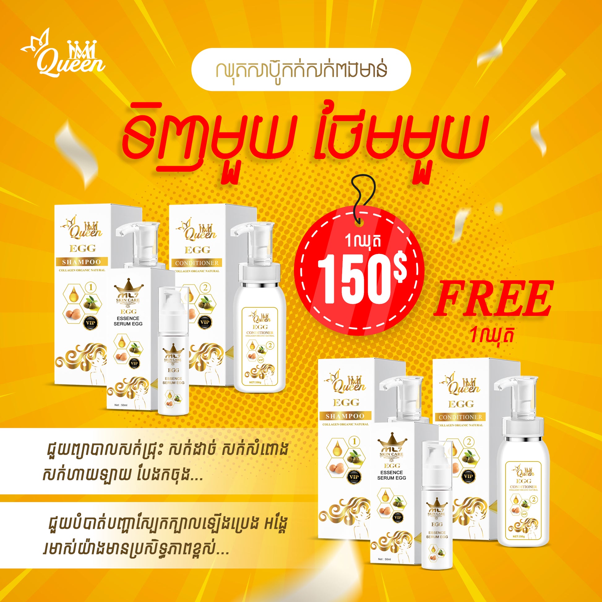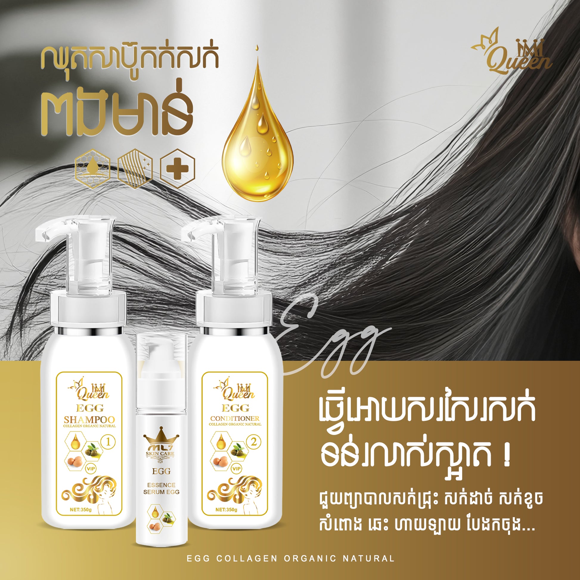 EGG Collagen Organic Hair Care Set get rid of oil and dandruffs from the scalp, repair damaged hair, prevent breakage and fall outs, moisturize the hair while thicken and strengthen every hair strand.