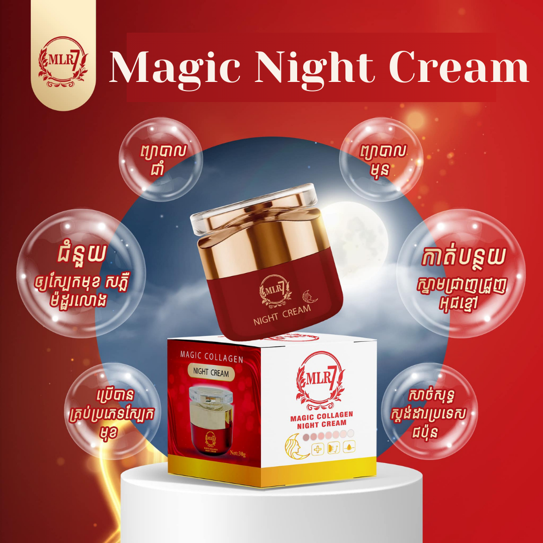 Transform your skin while you sleep with Magic Collagen Night Cream! This powerful cream tackles wrinkles, dark spots, hyperpigmentation, and acne scars for a youthful, radiant complexion. Wake up feeling refreshed and renewed with Magic Night Cream.