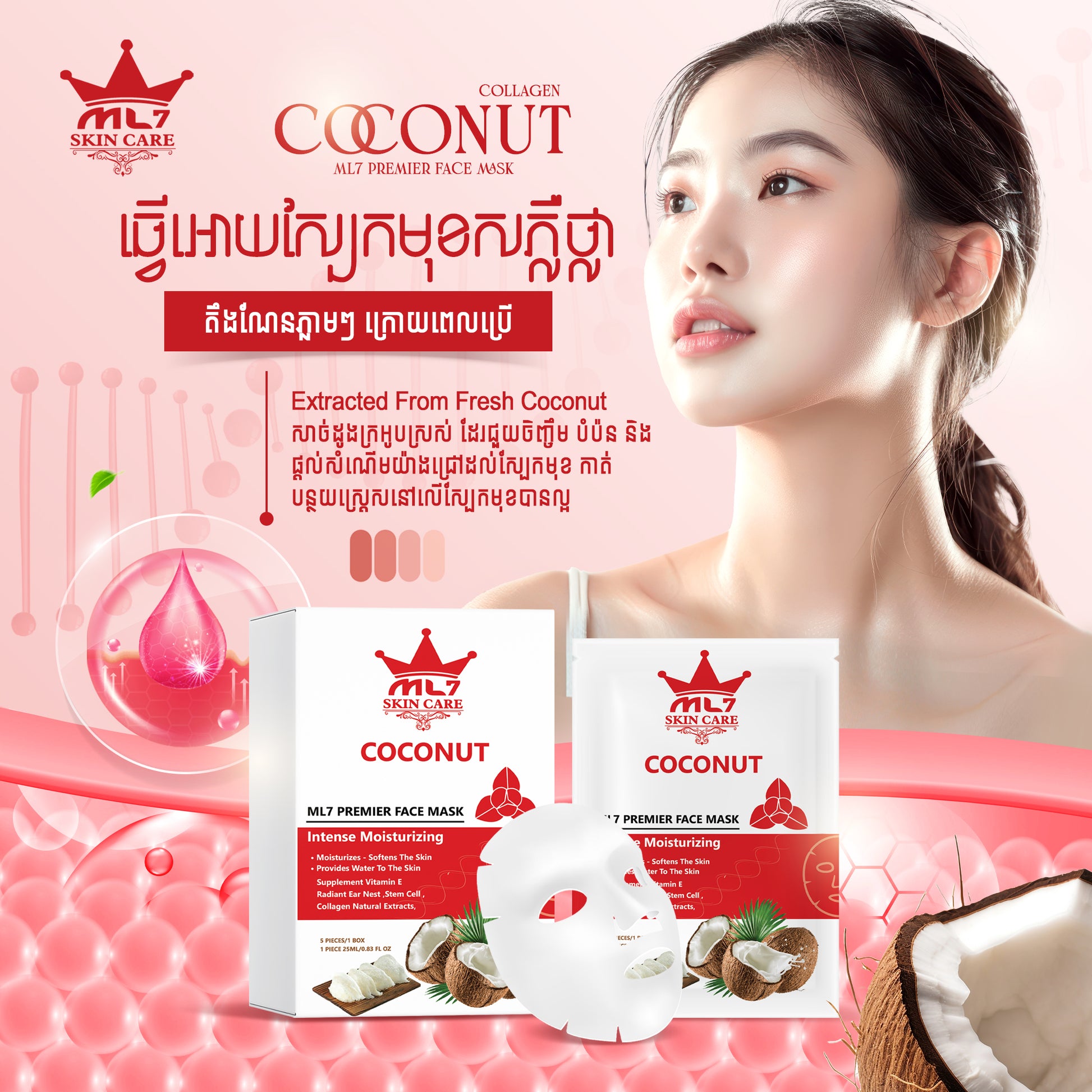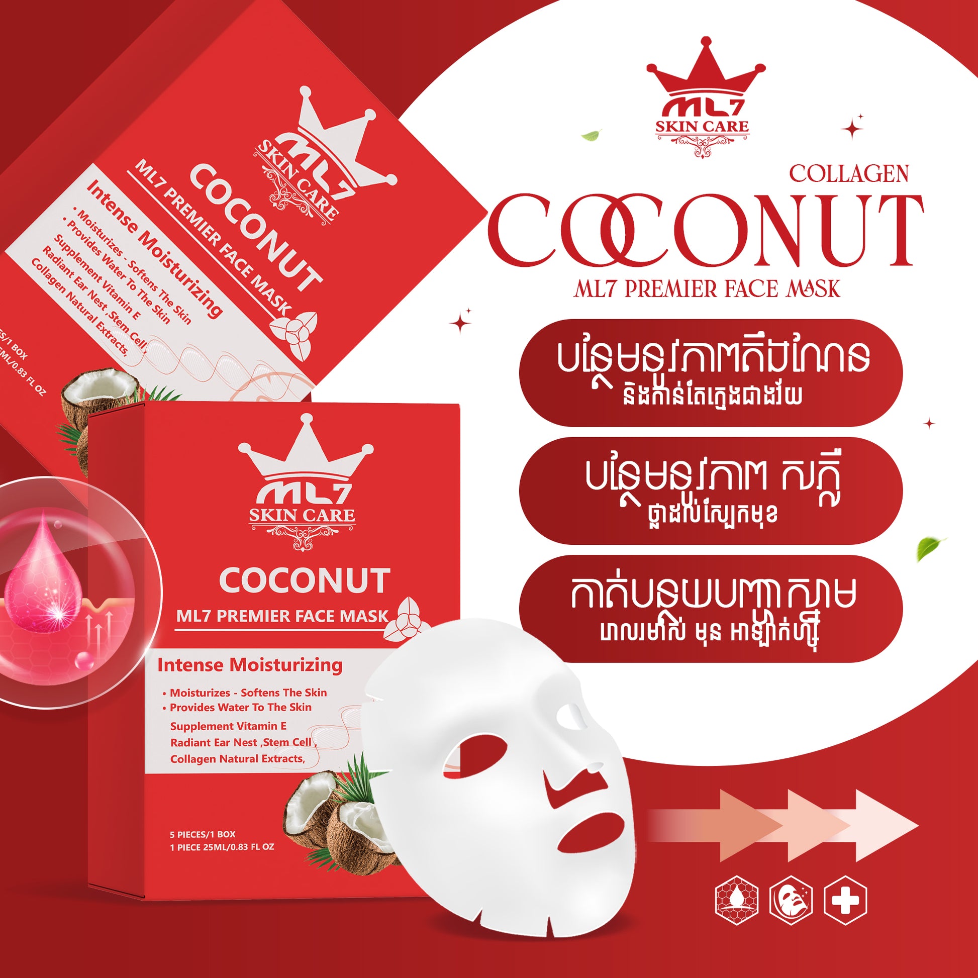 Revive and rejuvenate your skin with our ML7 Collagen Coconut Face Mask! Made with premium ingredients like organic coconut and collagen extract, this mask deeply moisturizes, softens, and nourishes your skin. It also helps to calm rashes and redness, brighten skin, and reduce dark spots. Experience the ultimate pampering for your skin with our luxurious face mask.